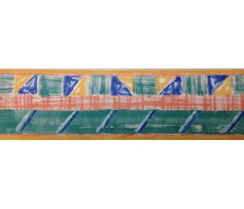 51392 Crown wallpaper border. In a modern pattern design in blues, greens and yellows. This border would brighten up any room in your home.Pattern repeat 53cm. 5 meters in length, 13 cm heights.