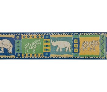 This border features a playful and colourful design with an animal theme. The pattern consists of a series of rectangular blocks, each containing a stylized image of an animal. From left to right, the animals depicted are: