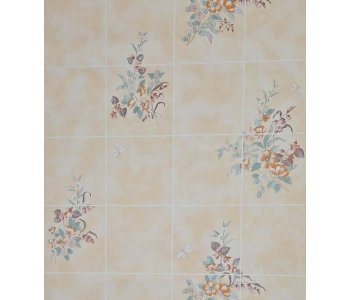 55128 Crown Cream Tile Effect with Flowers Wallpaper.