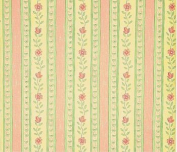 This wallpaper features a beautiful combination of colourful green and pink stripes adorned with intricate yellow and pink floral patterns, creating a bold and dynamic look for any room in your home.