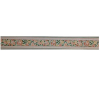 Fiori wallpaper border in peach, light yellow and orange floral pattern with decroative design trim. Pattern repeat 13.5cm. 10 meters in length, 5cm in height.