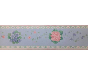 The 5798 Colman Bros Fiori Blue and Pink Floral Design Border is a decorative paper border featuring a floral pattern in light blue, pink, green, and purple colours.