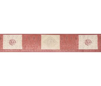 The 10 Metres 593901 Arthouse Textured Red & Cream Design Border is a non-pasted wallpaper border made of paper, featuring a striped pattern in red, cream, and gold colours.