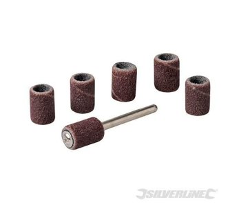 Aluminium oxide abrasive drums for sanding, shaping and surface preparation. For use on metals, alloys, ceramics, tiles, stone, glass, plastics and fibreglass. Compatible with most rotary tools including Silverline, GMC and Dremel. Includes 6 x 80 Grit drums. 3.17mm drum mandrels.