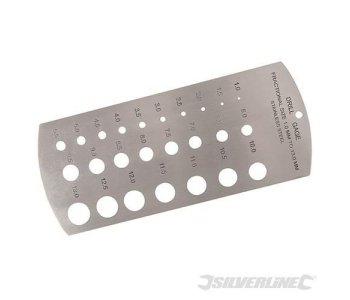 598570 Drill Gauge.Tempered stainless steel gauge for measuring twist drills and other small items. Etched graduations.