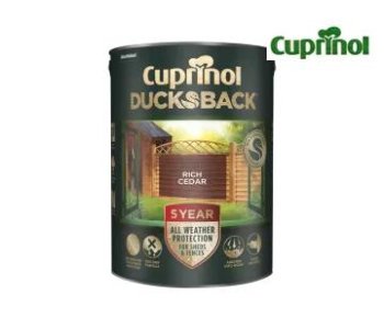 Cuprinol Ducksback has an advanced, wax enriched, formulation that colours and weather protects rough sawn garden wood for up to 5 years. The formulation is also showerproof in 1 hour. Its non-drip formulation minimises mess during application. It is quick drying, low odour and safe to use to use around plants and pets.