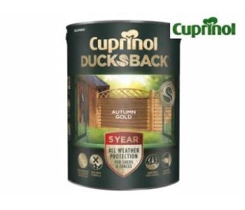 Cuprinol Ducksback has an advanced, wax enriched, formulation that colours and weather protects rough sawn garden wood for up to 5 years. The formulation is also showerproof in 1 hour. Its non-drip formulation minimises mess during application. It is quick drying, low odour and safe to use to use around plants and pets.