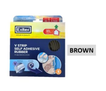 EXITEX SELF ADHESIVE RUBBER V STRIP 5M BROWNEXITEX RUBBER V STRIPSIZE 5M LENGTH SEALS GAPS 3-7MMCOLOUR BROWN SELF ADHESIVEFITS ALL WINDOWS AND DOORS