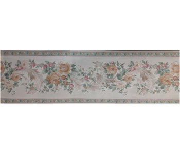 6506 Zen Wallpaper Border.A Zen border with a classic flower design in neutral colours with a pretty flowered trim. Paste the border.Spongable.Pattern repeat 26.5cm. Length 5 meter.13cm in height.