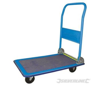 Rigid flatbed trolley with powder-coated steel frame for a variety of warehouse, office and domestic applications.