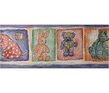 69-181 Vymura Kids Wallpaper Border with a cute teddy, dog and rabbit design.