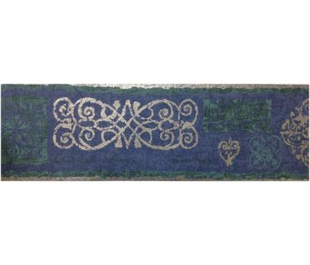 This blue, silver, and green border is washable and easy to install with its non-pasted application.