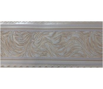 Vymura vinyl border with a central swirl effect pattern in beige and cream with a decroative trim. Pattern repeat 32cm. 5 meters in length and 17cm in height.