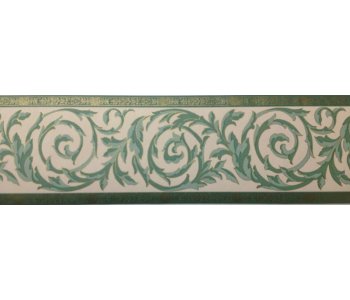 A nice border with a cream blackground and a green and light green leaf design with a gold trim.