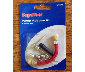 STCA5 Pump Adaptor Needle Kit.Inflating needles pump adaptor kit.Includes 5 inflating needles, 1 airbed nozzle & 1 flexible air. Suitable for balls & bicycle tyres.