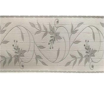 The 74824 Belgravia Eleganza Tessuto Silver Vinyl Border is a stylish and elegant wallpaper border featuring a leaf pattern in silver and off-white tones.