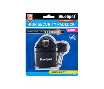 The BlueSpot 65mm High Security Padlock is manufactured from zinc alloy for increased durability. The closed shackle provides maximum protection whilst also protecting against hacksaw and cropping attacks. Suitable for outdoor use. Supplied with 4 keys.