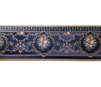 77558 Crown Ready Pasted Vinyl Wallpaper Border.Border in a colourful arrangement of flowers and a dark blue background. Pattern repeat 18cm. 5 meters in length. 12.8cm in height.