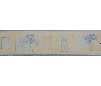 Holden Decor Milano design in a blue and pale beige shade border with squres, flowers and out line in gold.