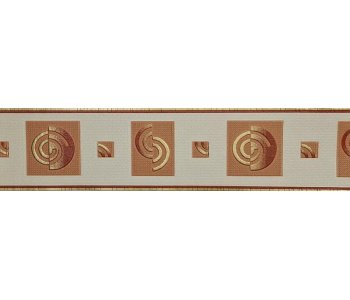 A wonderful textured bright blown vinyl border in a orange and gold design, of squares and half circles shapes on a white backround.