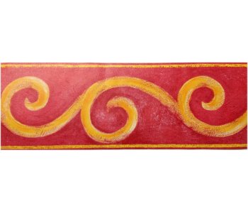 The 81733 Gallery Orange Twirl Red Background Design Border is a modern and stylish wallpaper border made of paper.
