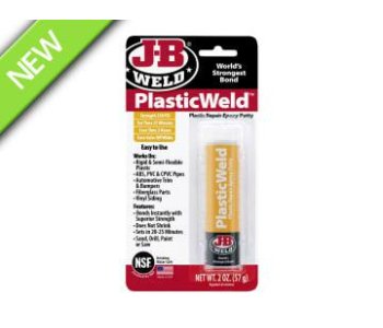 J-B Weld PlasticWeldT Epoxy Putty is hand-mixable and fast-setting, only 5 minutes. After mixing, it forms a polymer compound which can be moulded or used to build up and repair just about anything made from plastic. When cured, it can be sawed, drilled, carved, sanded and painted. Resistant to water, chemicals and heat.
