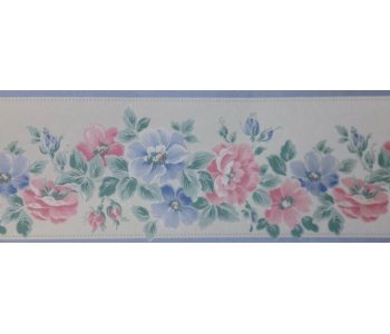 Introducing the 85491 Crown Floral Design, a charming wallpaper border that will add a touch of elegance to any room. This border features a delightful pink and blue floral design with a contrasting blue edge, creating a beautiful and intricate pattern that will enhance the look of your walls.