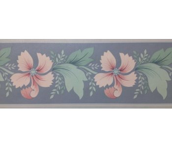 91308 Pride wallpaper border in a light pink flower and green leaf design. Pattern repeat 13cm. 8 meters in length, 10.5cm in height.