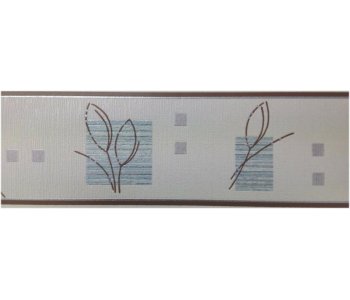 92022 Belgravia Decor textured blown vinyl in a simple leaf design in brown and large blue squares and small silver squares.