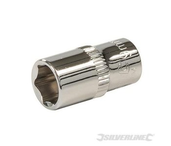 6-point hex socket for maximum torque transfer to the face of the fastener. Precision cold-forged, hardened and tempered chrome vanadium steel. Fully polished and nickel chrome-plated for durable corrosion resistance. Chamfered ends and thin walls for positive location on fastener. Knurled ring gives grip and control, and bearing hole provides solid connection to the tool.