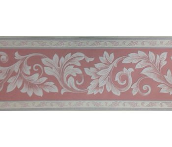 A Super fresco border in a white and deep pink leaf design on a pink background. Also has a small light pink leaf design at the edge to give it a nice finish.