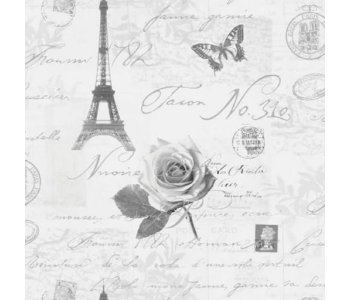 Introducing our stunning 97752 Calligraphy Grey Wallpaper, perfect for adding a touch of Parisian charm to your space. This unique wallpaper showcases a delicate French-inspired design featuring elegant calligraphy, vintage stamps, beautiful roses, intricate maps, and the iconic Eiffel Tower, all set against a sophisticated grey backdrop.