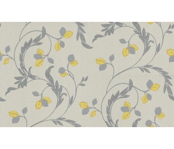 Add a touch of elegance and sophistication to your living space with the 9782-03 Erismann Shimmer Yellow Flower Blown Vinyl Wallpaper. This exquisite wallpaper features a sweeping trail of leaves in a stunning combination of silver metallic and yellow colours, set against a subtly textured off-white shimmered background. The intricate design adds a sense of nature and tranquility to any room.
