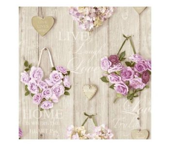 The wallpaper is further enhanced with loving phrases in opaque cream tones, allowing the wood grain to subtly show through. Whether you're aiming for a shabby chic or romantic theme, the Vintage Hearts Lilac A14502 Wallpaper is the perfect choice to infuse your space with elegance and style.