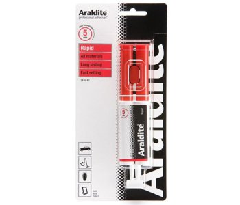 Araldite© Rapid Epoxy is a strong, long-lasting solvent-free adhesive which is water-resistant and can be painted or sanded.