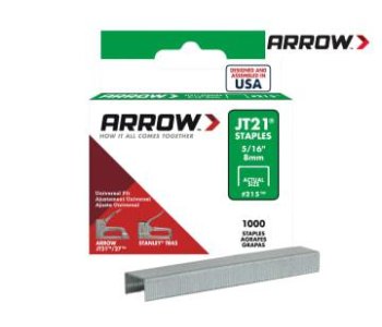 ARRJT21516S JT21 T27 Staples 8mm ( 5/16in) Box 1000Arrow JT21 series light-duty staples to fit JT21/21C staple gun.