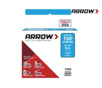 The Arrow ARRT50516S T50 Staples Box contains top quality 0.050 wire staples for use with T50 and T55 tackers: