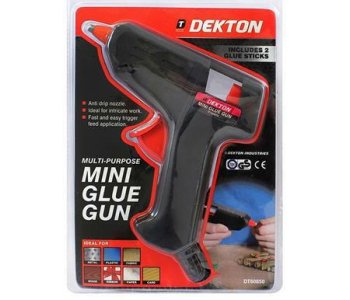 Dekton DT60850 10W Mini Glue GunAnti drip nozzle. Ideal for intricate work. Fast and easy trigger feed application. Includes 2 x glue sticks. 10W.
