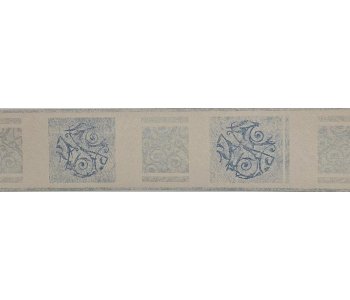 B.0271 Fine Decor Textured Vinyl Border.A modern slightly textured blue and silver patterned design on a pale background.Pattern repeat 53cm. 5 meters in length. 13cm in height.