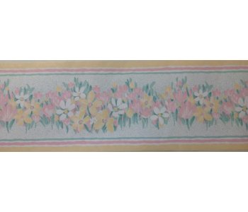 B183 Fine-Art Pastel Colours Floral Design Wallpaper Border.