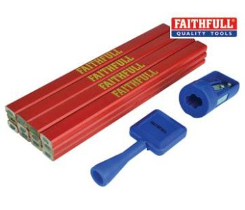 This Faithfull Carpenter's Pencil Set contains 12 medium pencils suitable for general carpentry, a retractable pencil holder and pencil sharpener. Almost any material can be marked out with these carpenter's pencils, with the exception of some metals and polished or glazed surfaces. The pencil leaves a clear visible line irrespective of material or grain.
