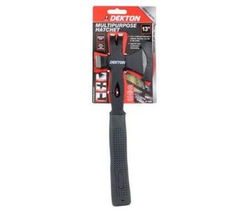 Dekton DT10590 13" Multi Purpose Hatchet4 in 1 multi tool features a hatchet, hammer, pry bar & nail puller. Perfect for both construction and dismantling. Ergonomic anti slip grip handle. Ideal for DIY and camping.