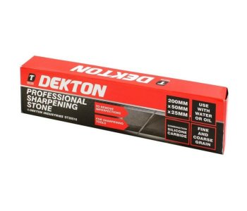 Dekton DT30516 Sharpening Stone 200mm x 50mm x 25mm2 sides: fine side to remove imperfections and coarse side to sharpen tools. Use with water or oil. Combination silicone carbide. 200mm x 50mm x 25mm.