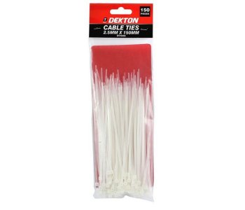 Dekton DT70455B White Cable Ties 2.5mm x 150mm Pack of 150