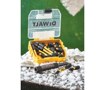 The DEWALT DT70587 FLEXTORQT Bit Set contains a selection of EXTREME© FlexTorqT screwdriving bits engineered for longer life. The built-in torsion zone has been designed to absorb and control high-impact forces, transferring them into the optimised geometry of the bit tip. Reducing the load on the driver and fastener means secure fixing with longer life. The full-fit head eliminates wobble and screw head rounding.