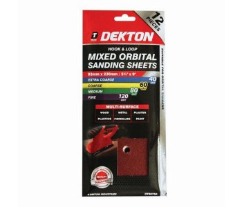 Dekton DT80750 Hook and Loop Orbital Sanding Sheets 93mmx230mm Assorted