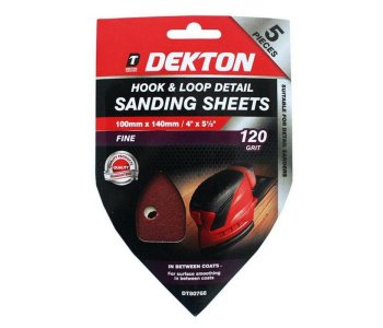 Dekton DT80768 Hook and Loop Detail Sanding Sheets 100mm x 140mm Suitable for detail sanders. Multi-surface: wood, metal, plaster, plastics, fibreglass, paint. 100mm x 140mm.