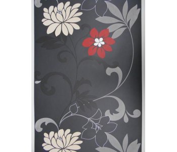 Introducing the stunning E39510 Direct Black with Floral design Blown Vinyl Wallpaper, a stylish and versatile addition to any living space. This wallpaper features a captivating design with a dark grey background adorned with elegant red and cream flowers, complemented by silver and black leaves and stems. The intricate floral pattern adds a touch of sophistication and charm to your walls.