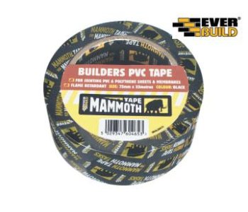 Everbuild Builder's PVC Tape is a strong PVC Tape with versatile adhesive qualities that is ideal for jointing all PVC and polythene sheets and membranes. Flame retardant, perfect for contamination barrier fastening, dust sealing of sheets and many other uses in construction and industry.