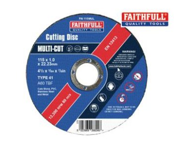 The Faithfull Multi-Cut Cutting Discs will cut a wide range of materials used in the construction and fabrication industries.